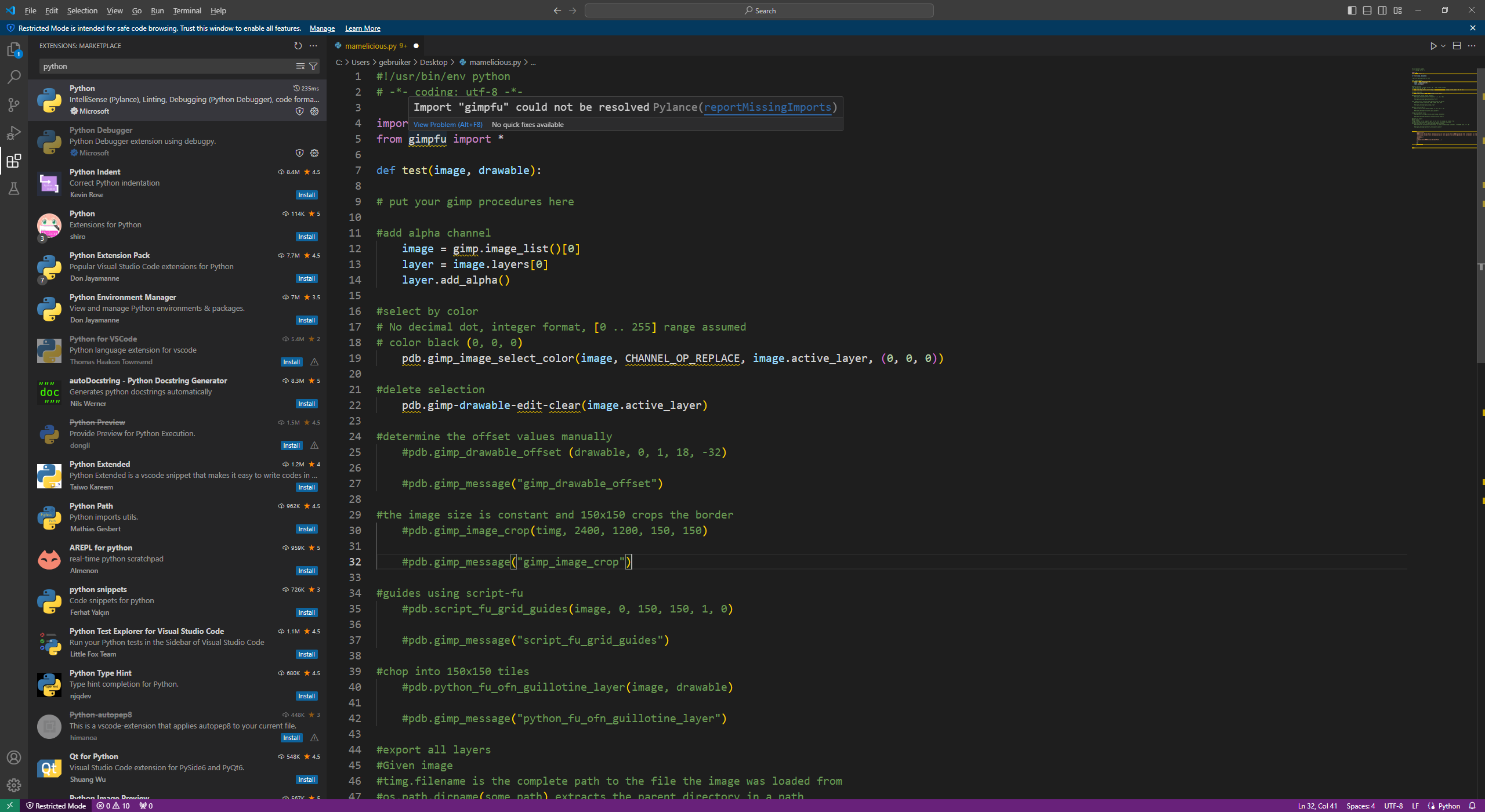 I’m not very good not in GIMP, nor in Python, nor English, so please excuse me for my mistakes)