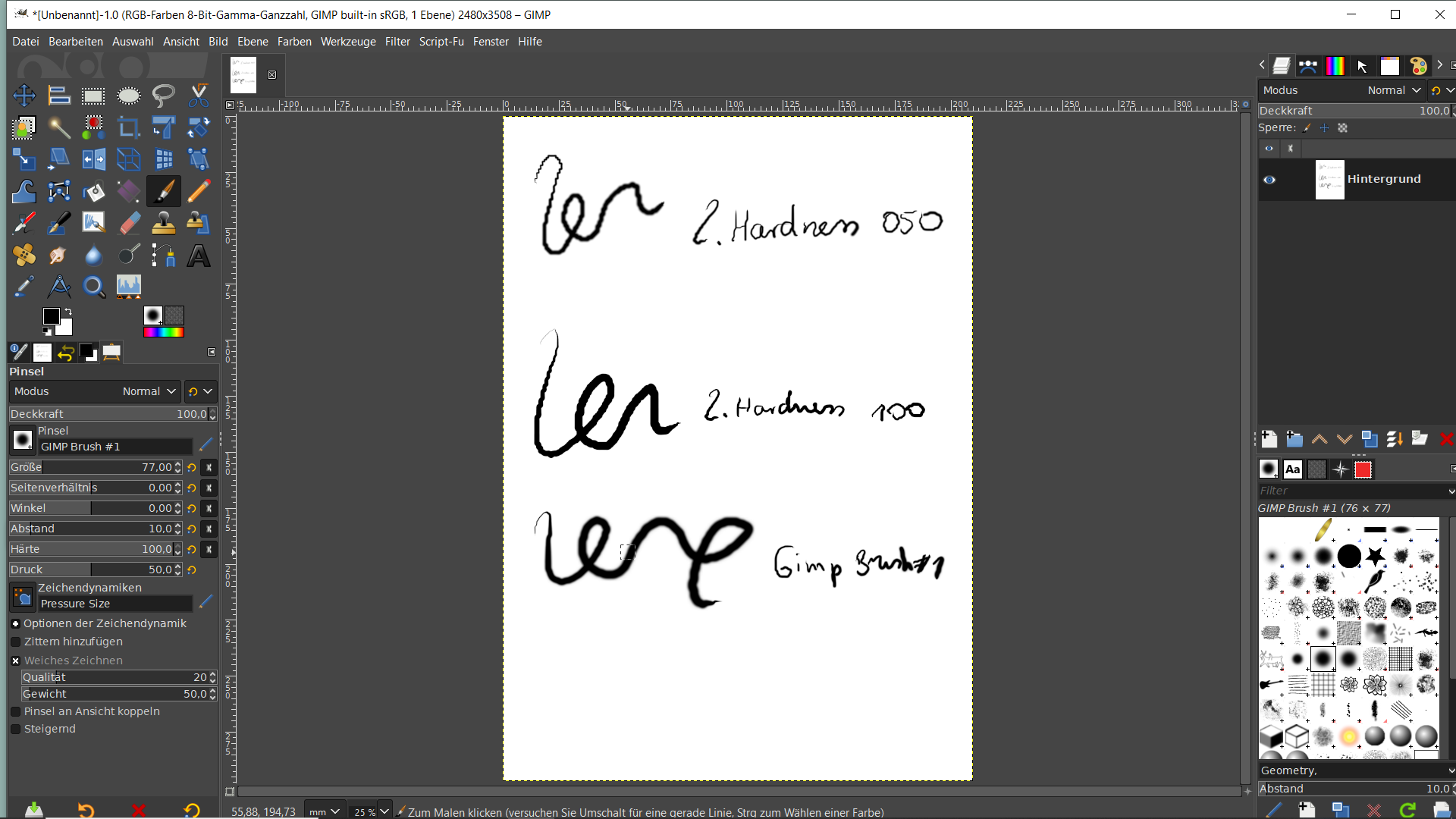 I am new in this forum. I use a Huion Tablet H950P, since the update to Gimp 2.10.36 my lines look like the screenshot. Very pixelated. I haven't done much with brushes in Gimp so far, however the strokes look terrible compared to results in other programs. Can anyone help me?