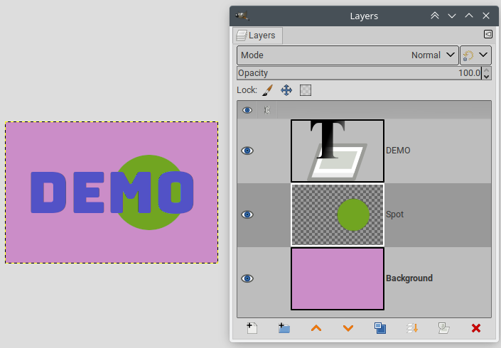 This can be disconcerting at times because if you click at random in text, you could be clicking on a transparent spot (for instance, inside the D or O above) and so selecting a layer below (the background or the green spot), which will make the move tool move that layer and not the text layer.
