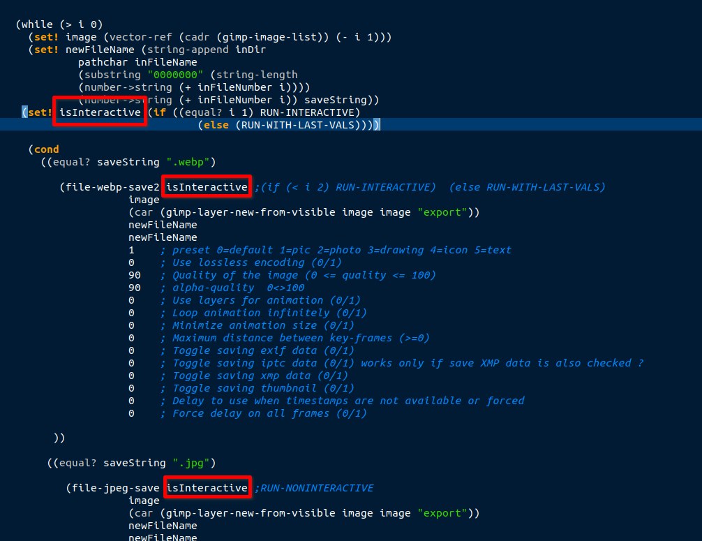 Thus if you have a bunch of images opened, you cannot run first RUN-INTERACTIVE on the first image to export and then RUN-WITH-LAST-VALS for the other images, thinking it will use the last settings you did use on the first image... That Will Not Work