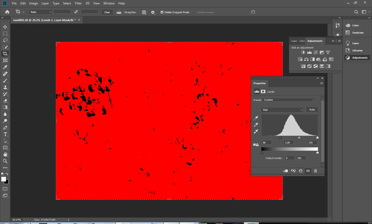 Some of these blond hairs were across a black jacket lapel. Now the lapel that should be black has a golden glow to it, especially where there might of been a grouping of hairs to make disappear.