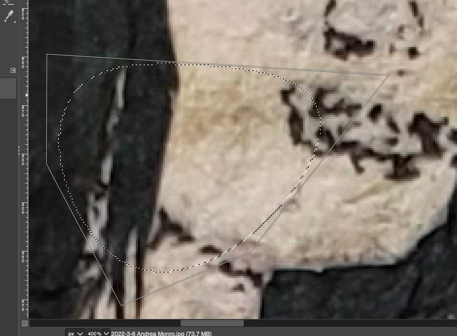 This has happened to me before in and somehow I managed to turn it off, but now I can't figure out how. Did I accidentally select something that set it to do this? It's very frustrating!!! I'm trying to do some picky editing of this image and I can't do it unless I can correctly free select the details to change. I was really delighted when I figured out, a few days ago, quite by accident, that I could free select an area and then when I used "paint clone" it would only paint within the selected area. But now it doesn't work because it won't let me actually select the area I want to modify.