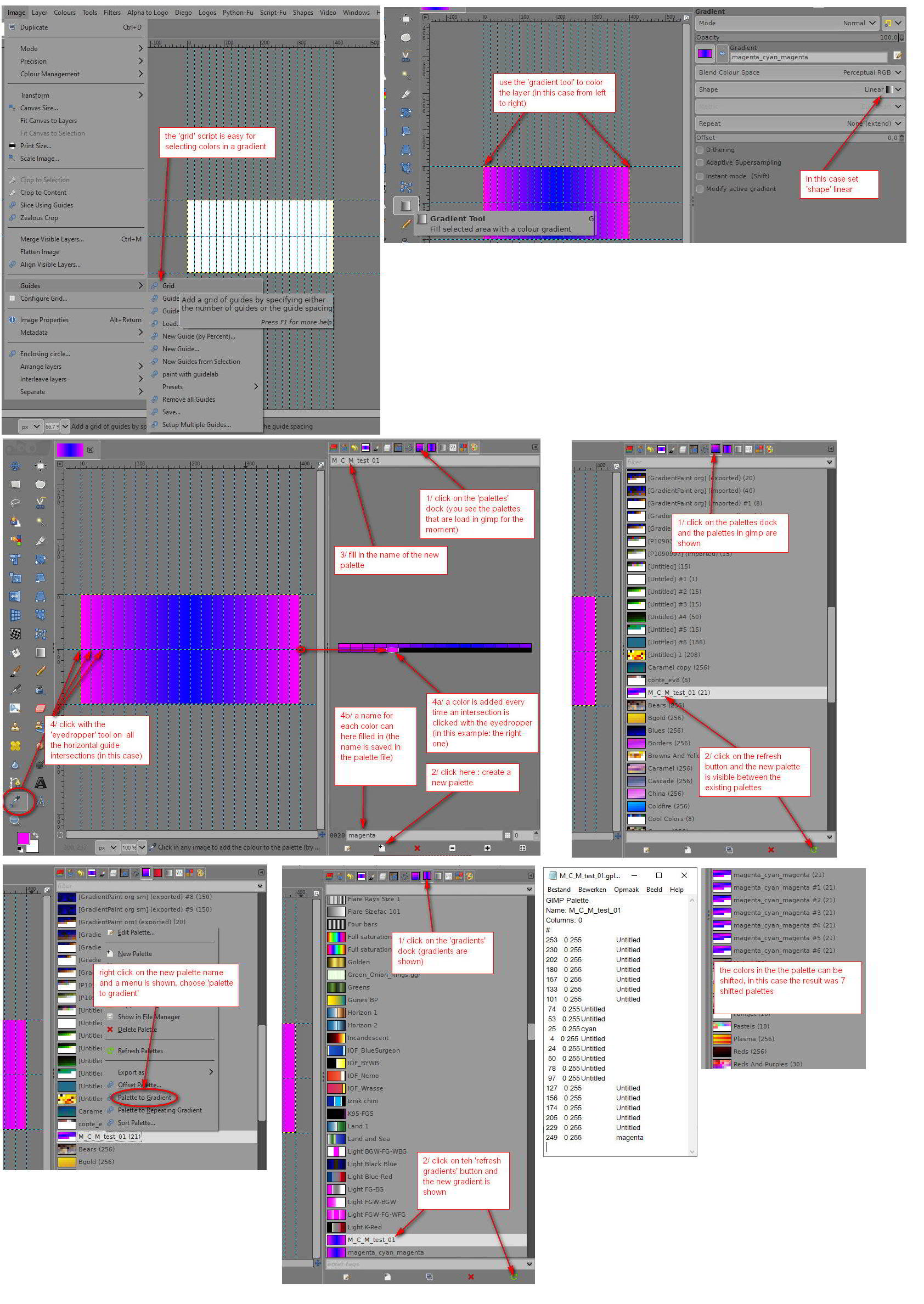 Make gradients (used my spreadsheet to shift the palettes: