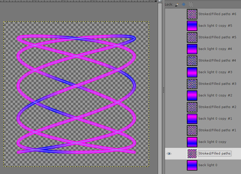 Make layers (used the new gradients and the Ofnuts 'Mass render' - 'Paint along paths'):