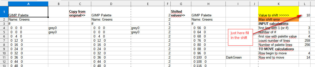How to use the spreadsheet to shift palettes :