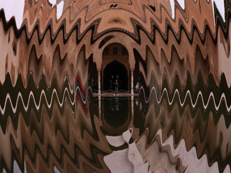 Source photo is not too good (Andalusia's skies aren't that blue in later October), but works OK as a demo of how to keep the center intact with Filters ➤ Distorts ➤ Waves.