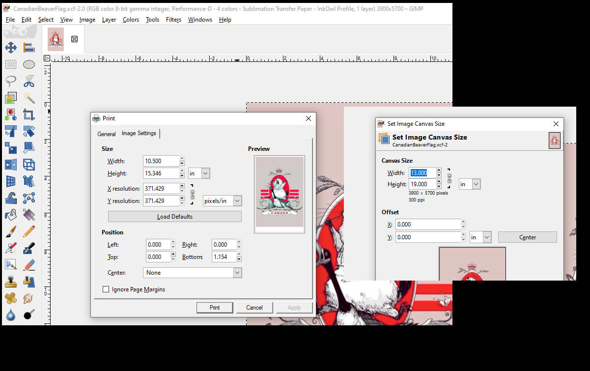 Next, I open canvas size again, it is not set to inches but automatically displays the values as pixels. When I then click inches again, I get 10.433 inches.