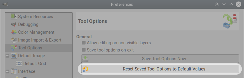 - Click the Reset Saved Tool options to default values button: