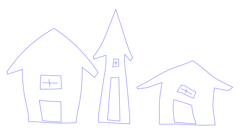 Another one. These three houses were made from the same straight-edged figure with Copy, Scale, and Warp: