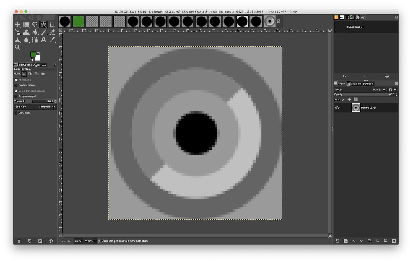 I've a feeling I needn't even extract that center-dot as a separate 'frame' to work in, but that would seem irrelevant –– when I get it shifted to Greens, I'll just paste it back in the Starting Point image.