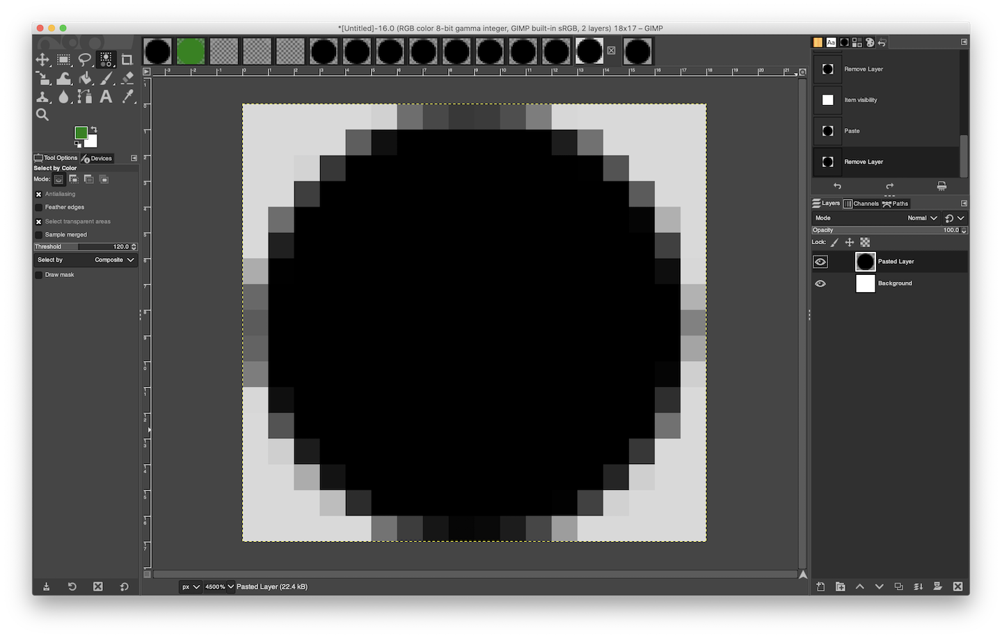 I wish to affect only the region depicted in 2) Intended Selection, selected via Select > By Color.
