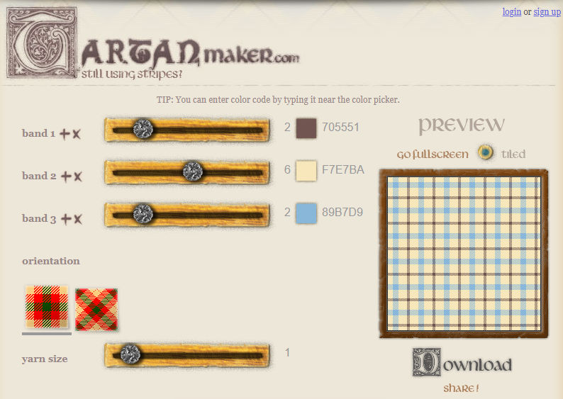 Need Scottish fabric in your graphic composition? Tartanmaker can help you : http://www.tartanmaker.com/?page=index. The result is available as png file.