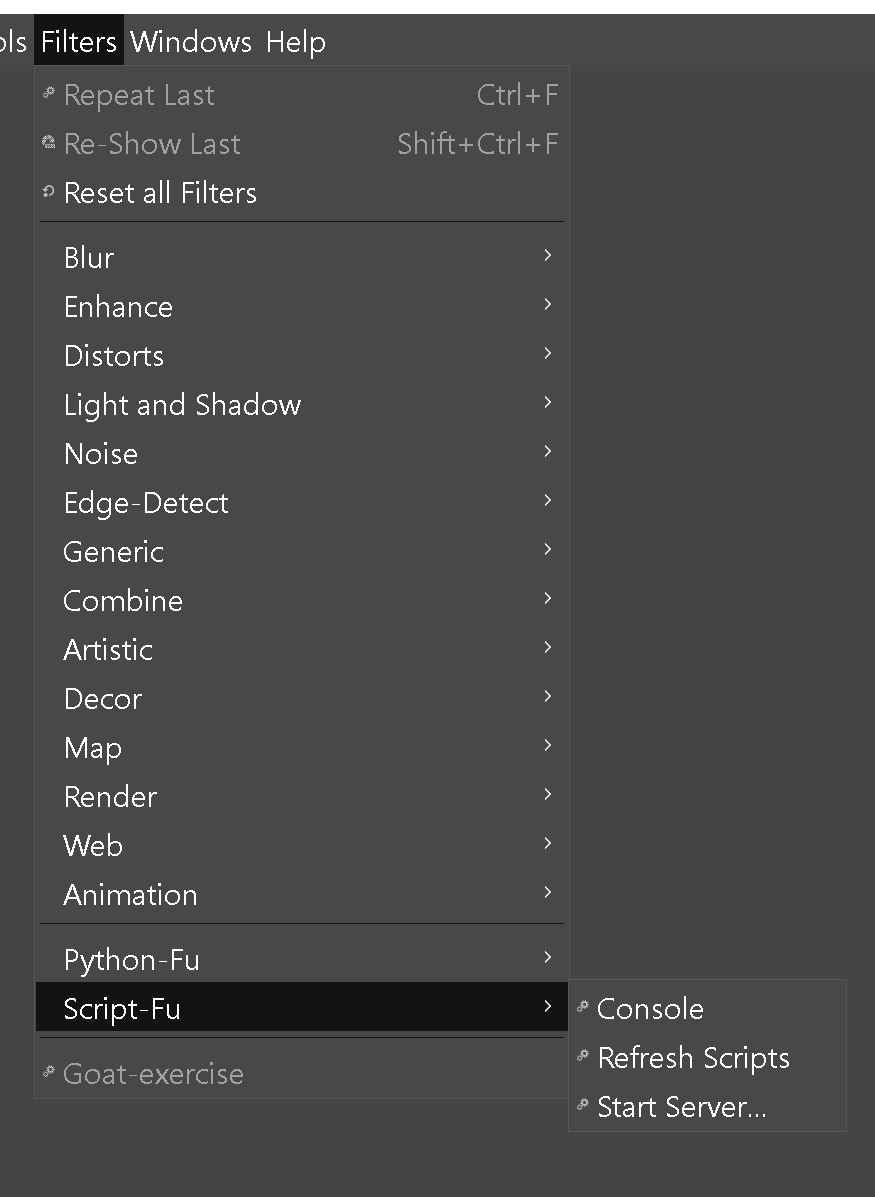 There are theoretically 53 .scm files in this folder, all but one added by the GIMP Installer, but nothing shows up in Filters > Script-fu except "Console", "Refresh Scripts" and "Start Server"