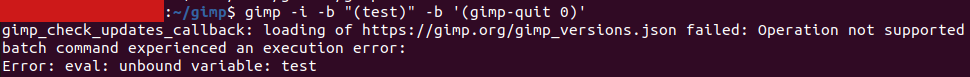 2) I go to /usr/share/gimp/2.0/scripts folder and run gimp -i -b "(test)" -b '(gimp-quit 0)'