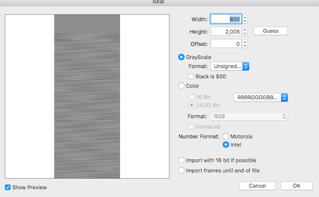 I now have a new laptop with Lubuntu 18.04.5, for which GraphicConverter is not supported. I tried importing raw data with GIMP, but the import settings do not seem to include Grayscale or Unsigned Long. I've tried a few other image-editing applications, including Converseen, UFRaw, and RawTherapee, but I haven't found anything that will do what I need. Is there any way I can get GIMP to do this, and if not, is there another program for Ubuntu that may work instead?