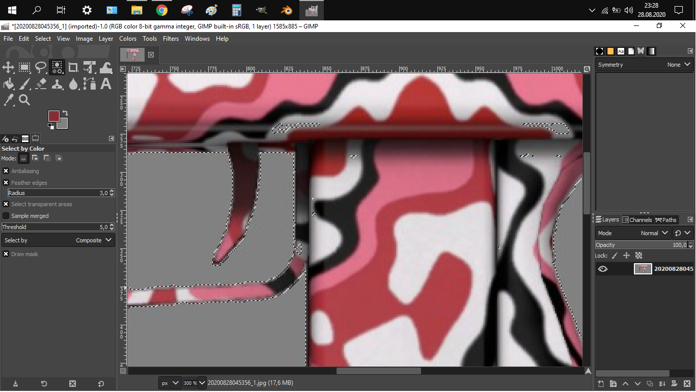 I am attempting to clean up an image my daughter drew for use on redbubble. I scanned the image she drew by hand, it scanned very well. Now I need to remove the background so it can be printed on other than white items without a giant white box around the image. I used the foreground select tool. I will try to describe step by step what I did.