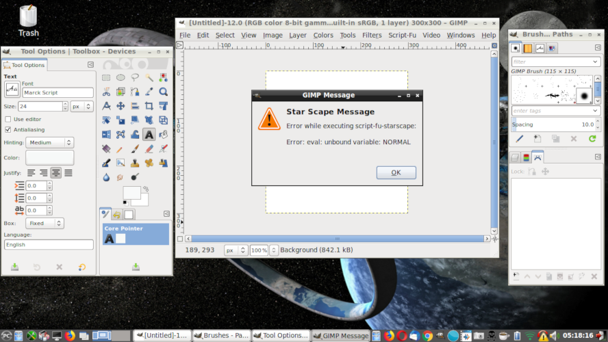 gimp: LibGimpBase-WARNING: gimp: gimp_wire_read(): error