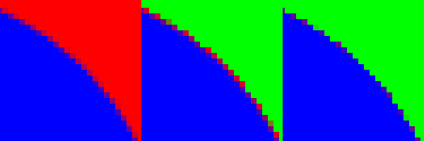 You will notice that in the 2.8 results, there are darker pixels that are due to Gimp 2.8 working on gamma-corrected values (the result is still vastly better than the jagged edges you get with simpler methods). Gimp 2.10 works in "linear light" and has no such problems.