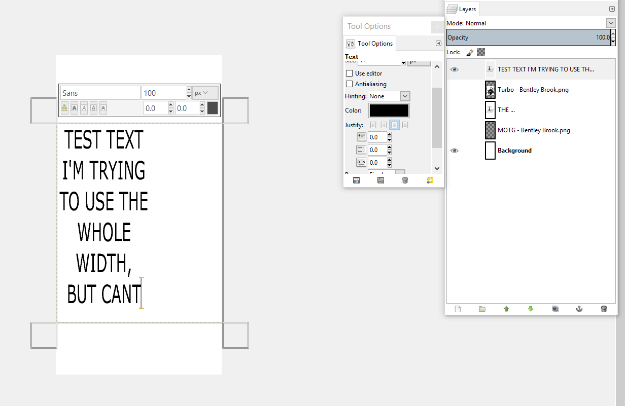 I kinda understand layers, but Im not able to compose a simple image and have both jpg and text in the right locations on one image.