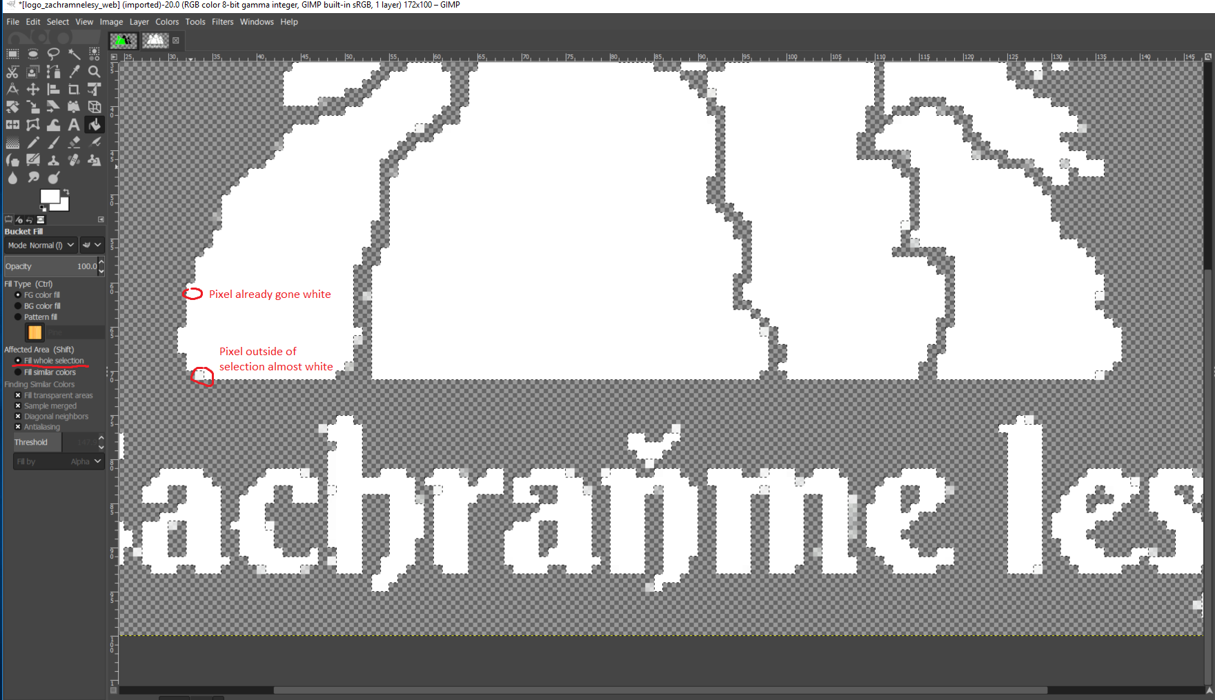 3. Ctrl + I to invert selection. I want all the now selected pixels white and only white.