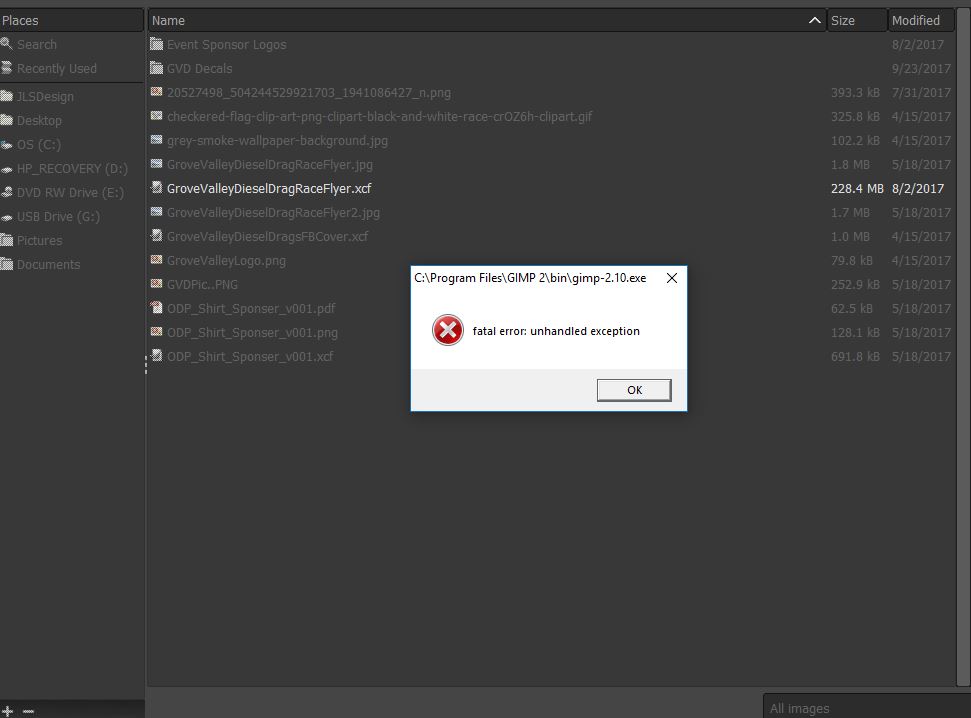 For instance, this afternoon I'm working on a flyer for a customer, and I need to pull some images from the previous years flyer, and it will not open 2 .xcf files.