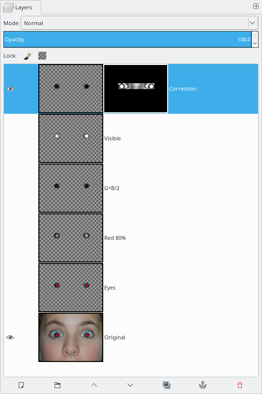 - Make a new layer from that: Ctrl-C, Ctr-V, Ctrl-Shift N. Let's call it "Eyes".