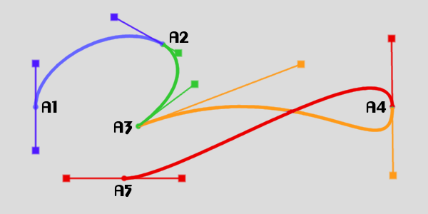 As elegant as they are, Bézier curves are not powerful enough to describe real-life curves such as the outline of characters. So more arbitrary curves are implemented by stringing together Bézier curves, the ending anchor of a curve also being the starting anchor of the next: