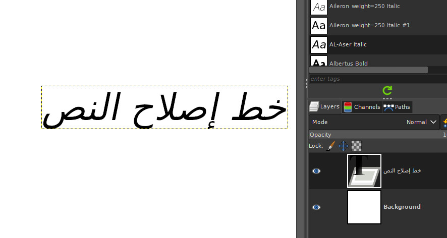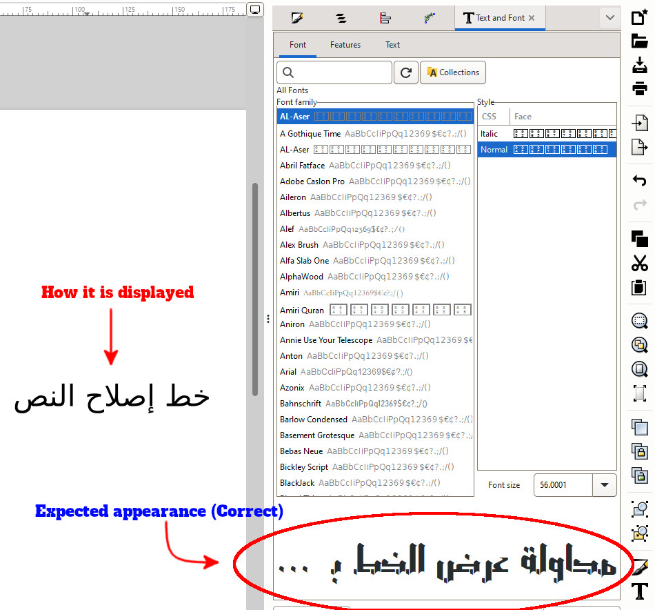 I want to use the *Al-Aser.ttf font, however, both GIMP and Inkscape do not display the font as intended.