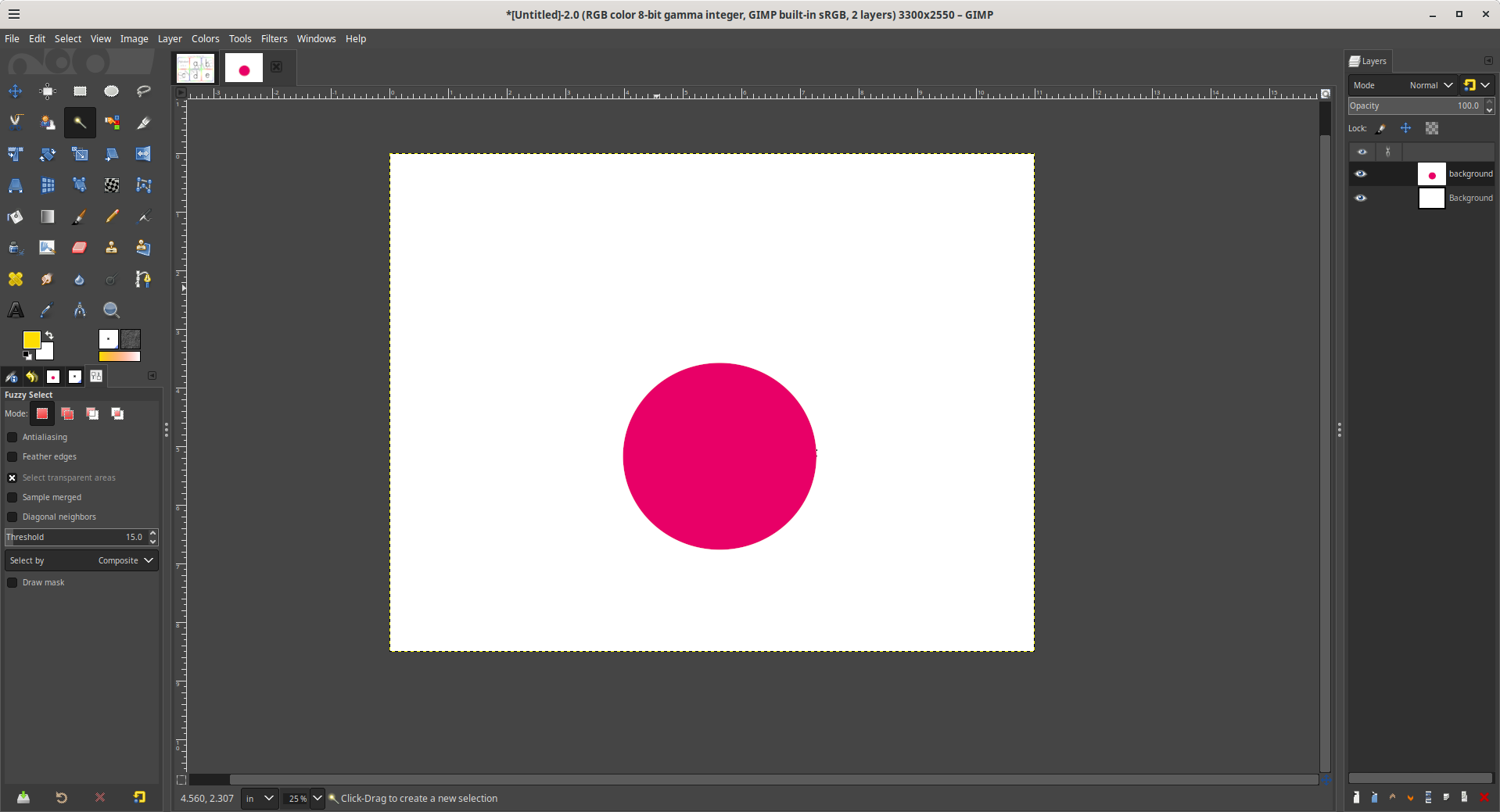 3. Using bucket fill, fill the selection with a single color. (Anything but white)