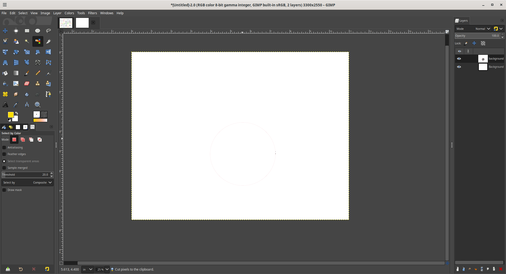 Using GIMP 2.10.34 on Debian 12. When I "select by color" and then either cut the selection or fill it with a different color, it leaves behind a border of the old color. This happens with the fuzzy select too.
