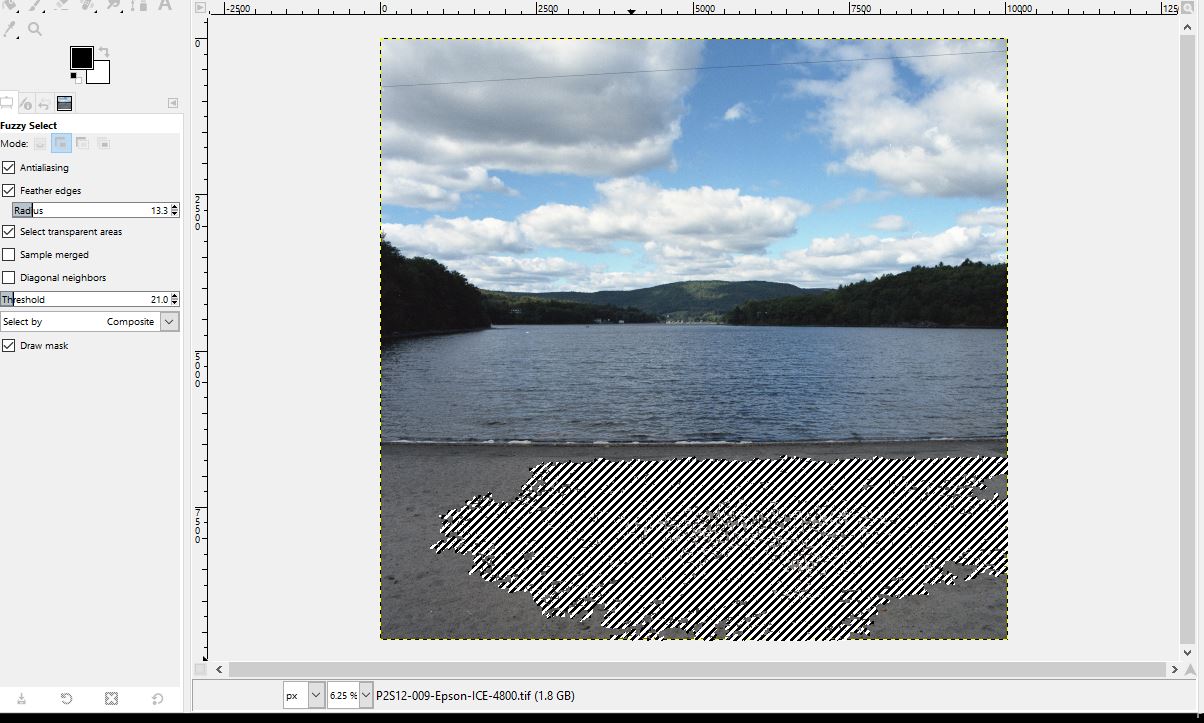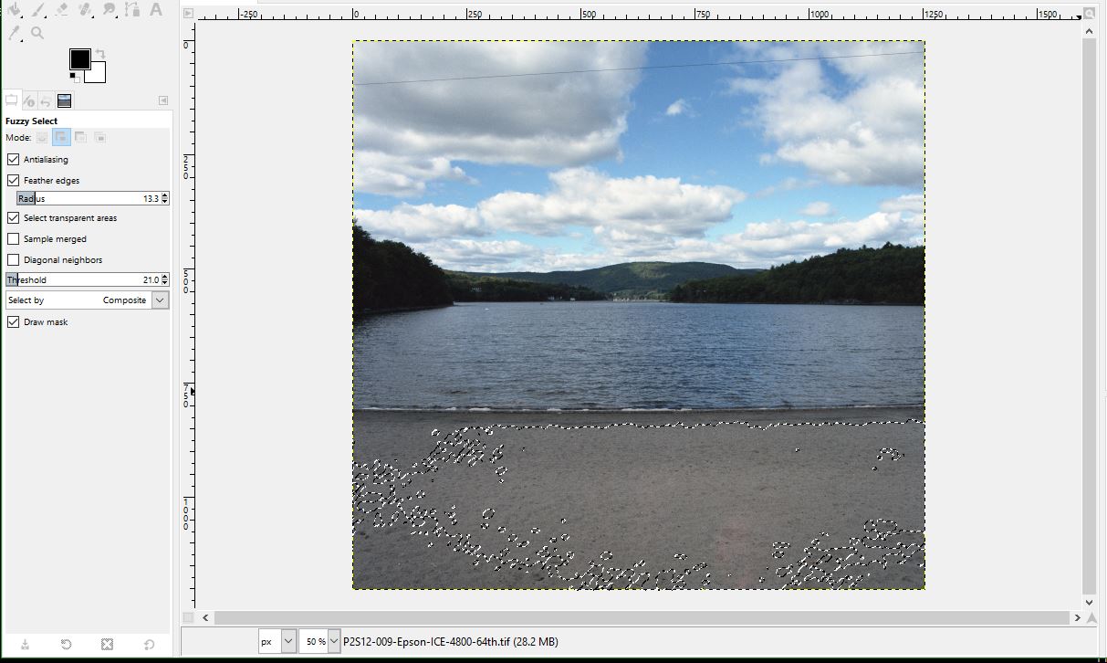 5. Using Select By Color, select the area made in step 3. (FWIW, I'm using Select By Composite with a threshold of 20.0)