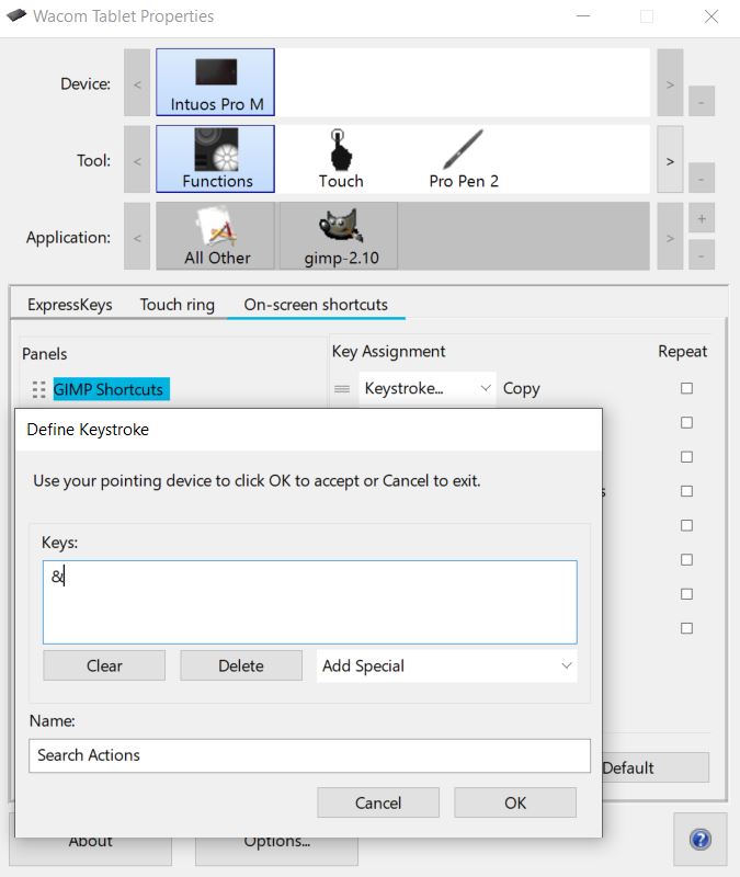 Another thing - is it normal for the on-screen shortcuts to only work when I press them with my wacom pen? If I press it with my mouse, it reacts but doesn't actually do anything.