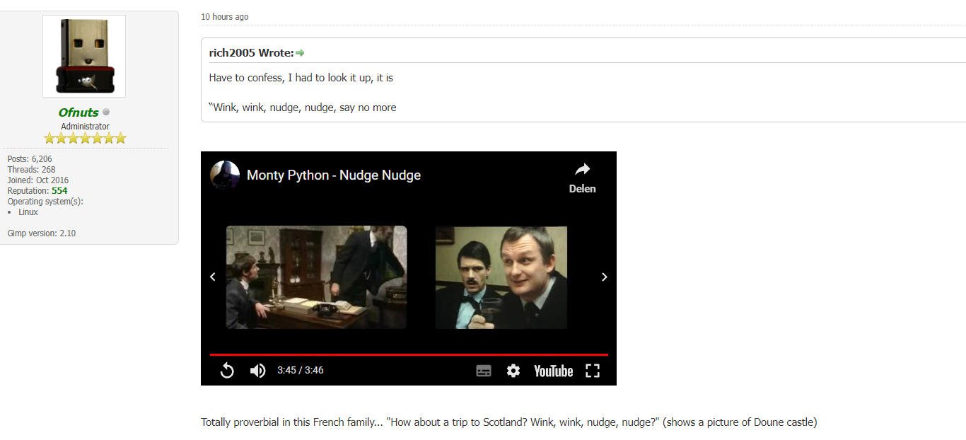 (08-30-2024, 05:11 PM)Ofnuts Wrote: Sometimes it's shorter, for instance this is a well known Monty Python quote: