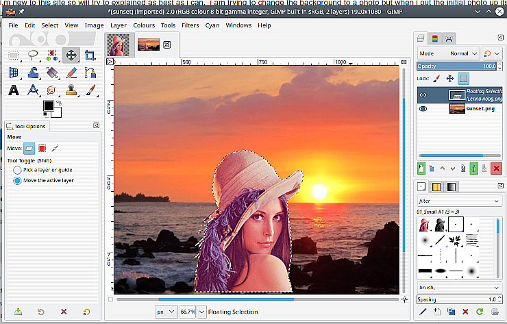 i,ll take the later part of your reply Rich to absorb later, but what i,m trying to say is when i open the photo to change the background i get like the first photo you,ve shown with the patterned but the picture itself has the normal border around it. do it make any difference to removing/replacing the back ground or should it not make any difference