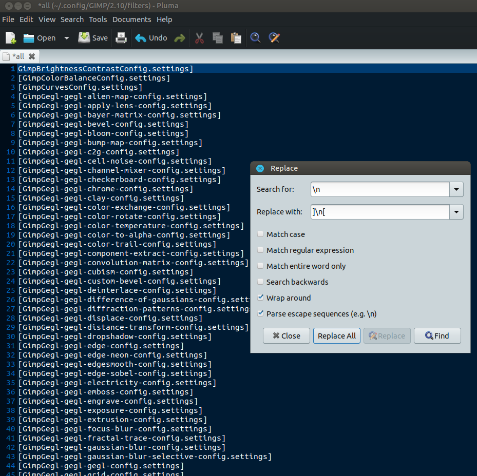 then I opened the "all" file with Pluma (a text editor), removed the "all" name on the top of the list and launch a search and replace