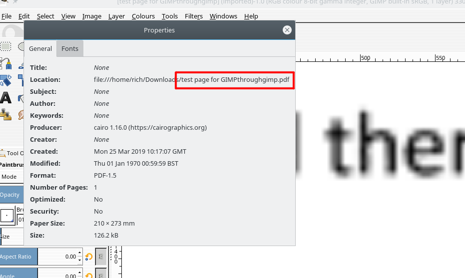 It is a PDF viewer 'Evince' but only because I wanted to compare the outputs from Gimp. Sometimes older versions of Cairo can give different results, both the same in this case.
