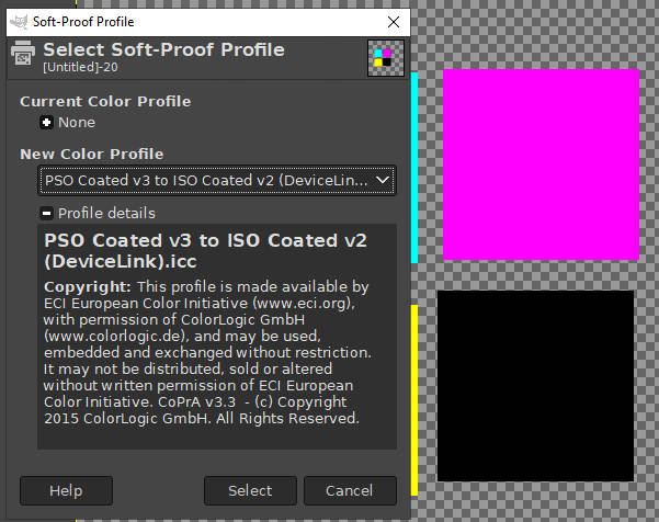 In other words, both in Inkscape and in Gimp, the file I downloaded (PSOcoated_v3_to_ISOcoated_v2_DeviceLink.icc) installs and loads without problems, but without any real effect.