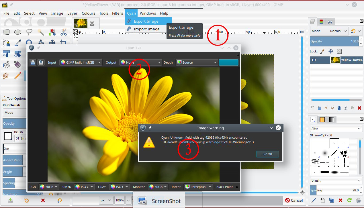 3. Plus a Gimp warning message, ignore / close that.