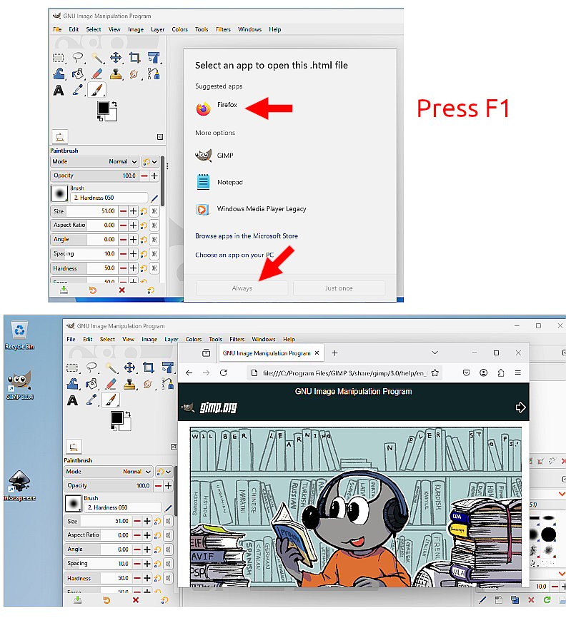 If you overcome that hurdle, then first time you call help, F1 key, you might have to select your Web browser, I have Firefox installed but might be MS Edge.