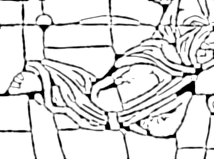 - Select > Grow by 4px: this grows back (and extends a bit) the selection around the thick parts