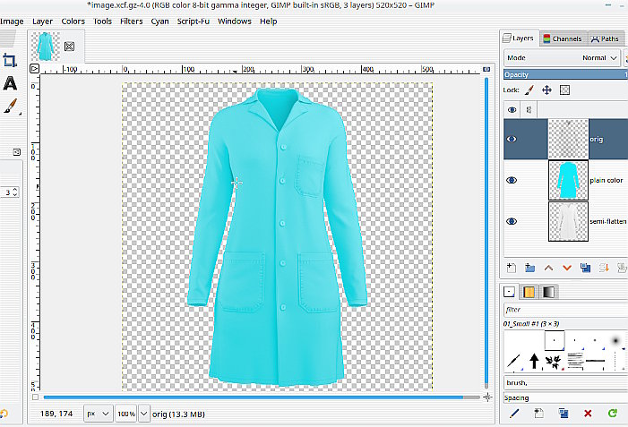 The image is colored by filling the layer. Change colour as required. Save this as a Gimp .xcf file. For web use, Export as a .PNG image.