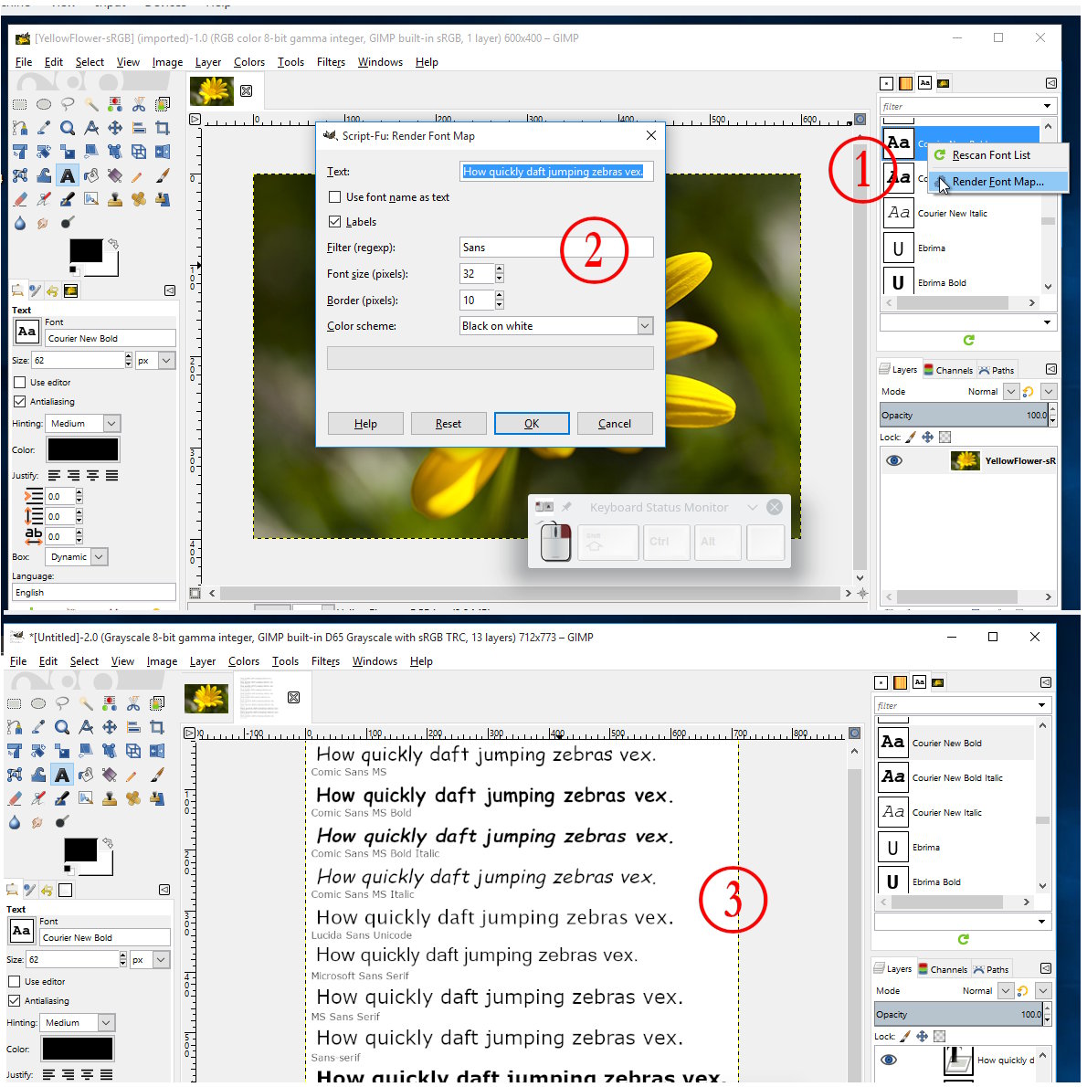 (1) Right click in the Fonts dock and select Render Fonts Map