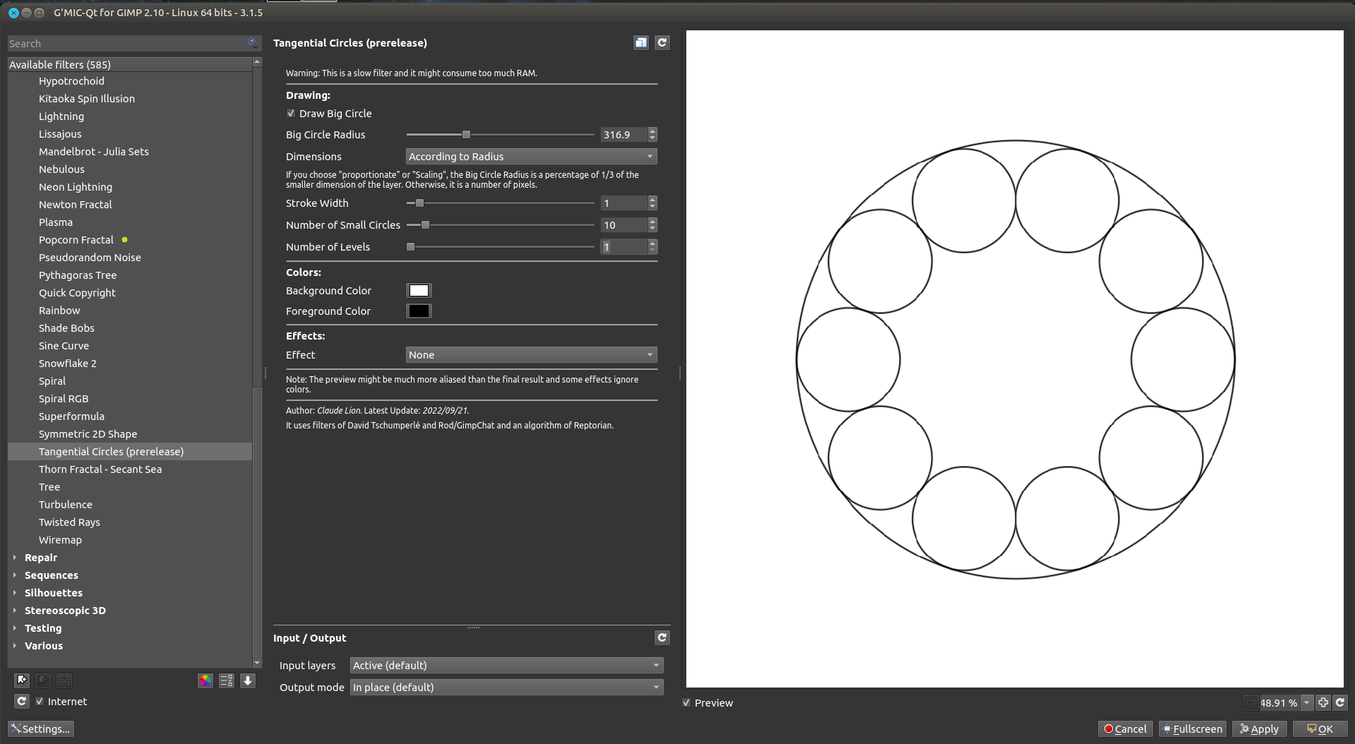 Claude Lion (cli345) made a G'MIC filter about it (Rendering > Tangential Circles) > http://gimpchat.com/viewtopic.php?f=28&t...20#p276726