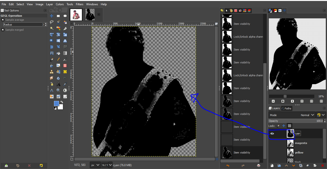 You have your decomposed image, with CMYK layers.