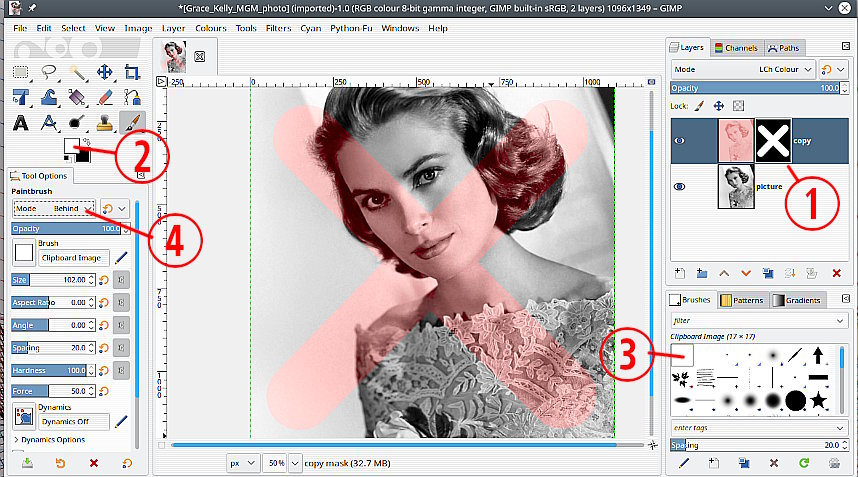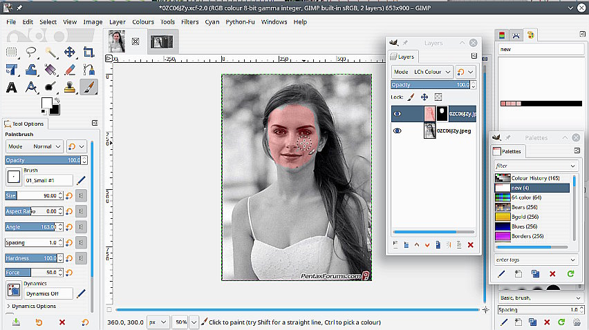 Today I try another couple B&Ws. I get as far as ready to paint the first layer (skin tone) but nothing happens. I wipe the brush over the image and it stubbornly stays B&W.