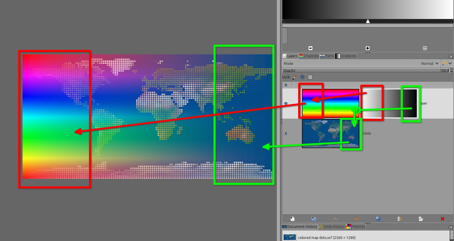 as you can see the white part of the gradient shows the top layer where the mask is