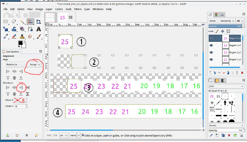 It seems I've almost got this to work now but it goes wrong for me at the last step when I click on "Distribute right edges of targets". For some reason, all of my layers seem to go blank as soon as I push it. Because my tiles are 8x8 pixels, I set the Offset X value to 8 and Offset Y to 0 before I push the distribute right edges button.
