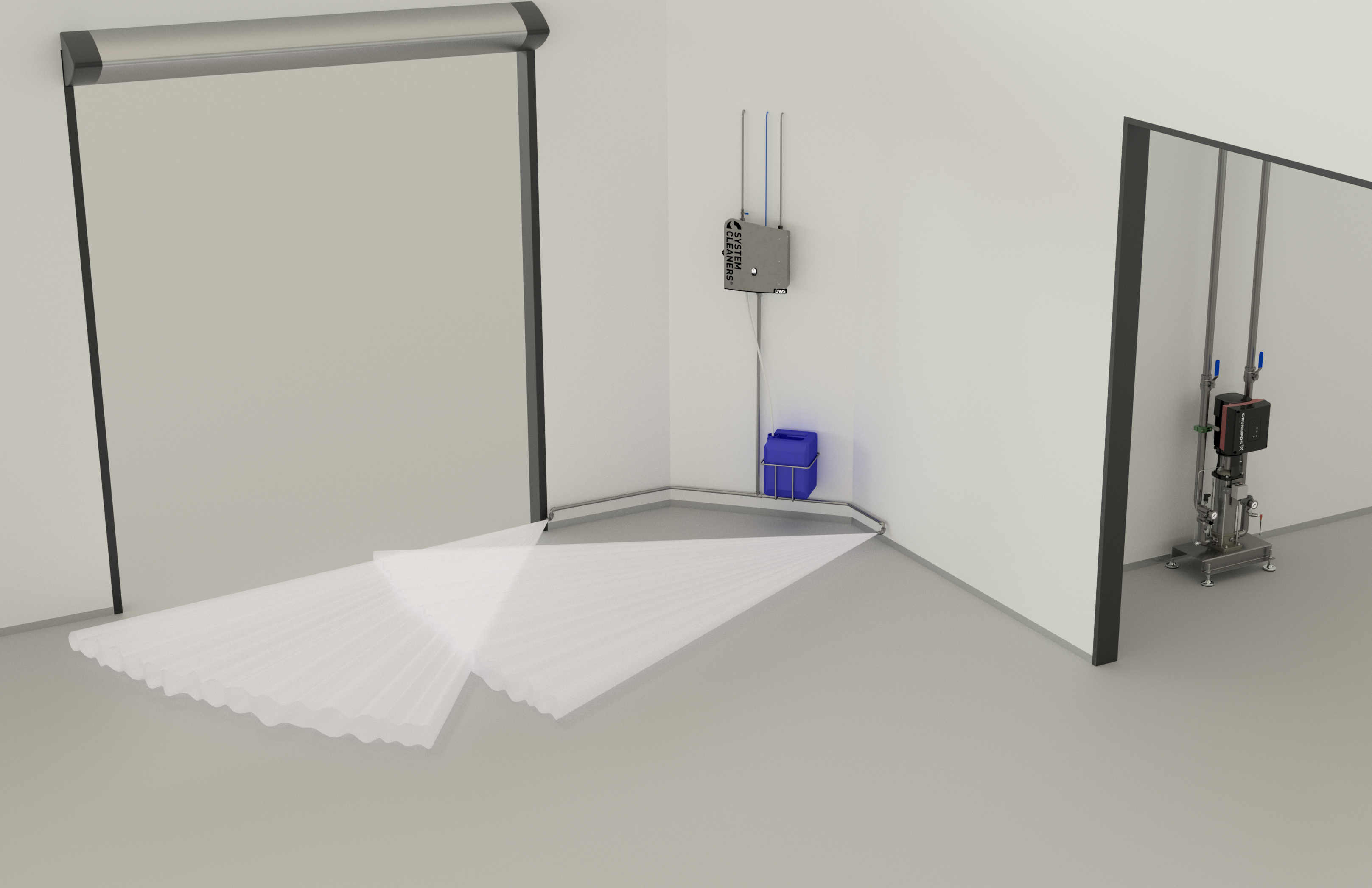 getting injected from a doorway sanitiser to the floor.