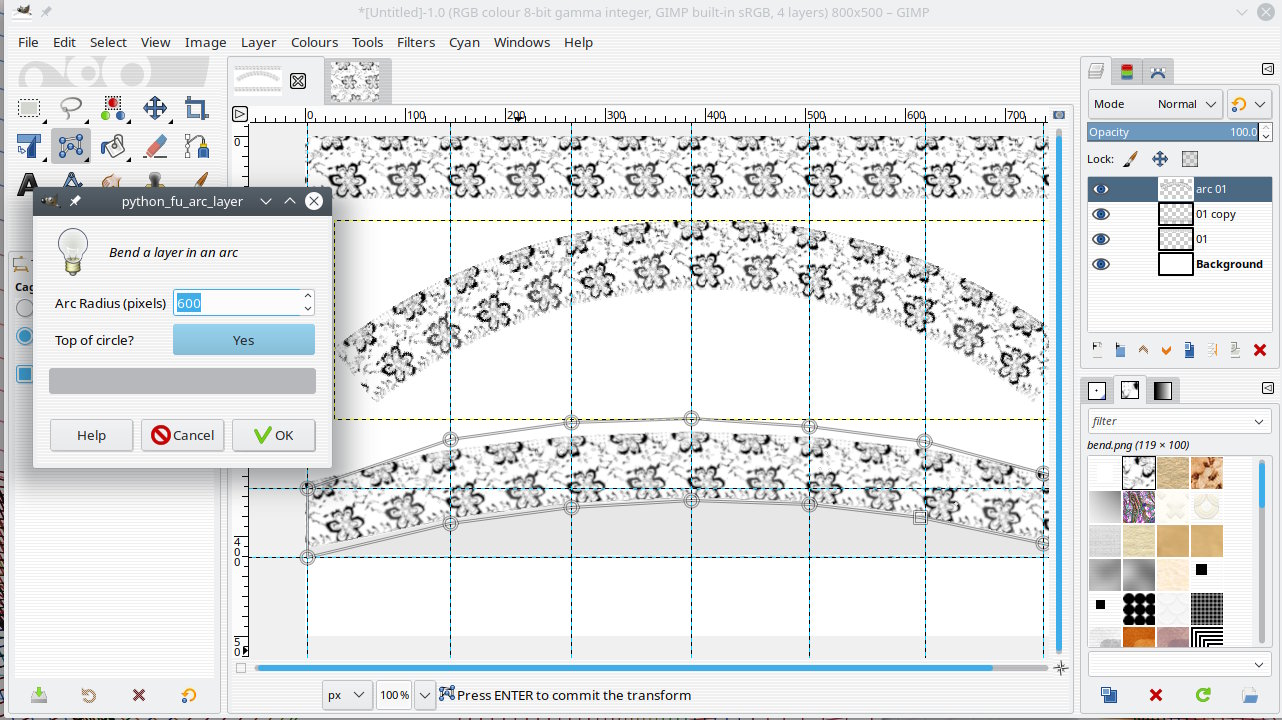 Anyway...the ideal solution would be to be able to load the points data from an SVG or something, so I could edit my path in Inkscape. If there's no way to do that, are there alternatives that allow me to edit the points either like...with the arrow keys or something, or in another program, or even (as big a pain as it would probably be) in a text editor or something? Is Curve Bend even the best way to do this? Tbh I'm still finding GIMP a bit counterintuitive in a lot of ways, so I have a difficult time with it sometimes.