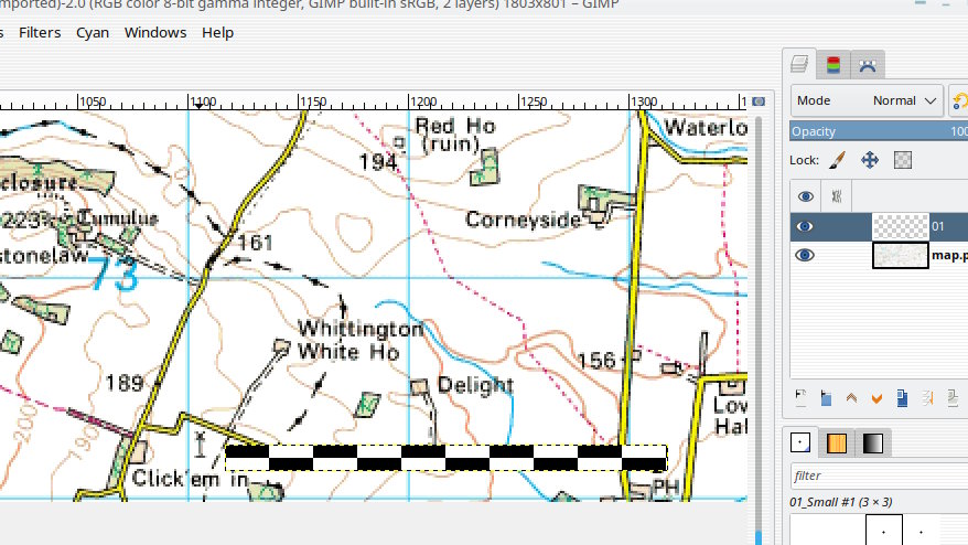 After all that, I would then crop the image, leaving some part of the line in the crop to act as the new scale.